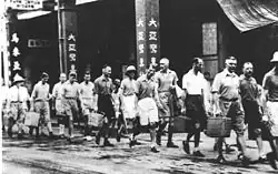 The Hong Kong News, a pre-war Japanese-owned English newspaper, was revived in January 1942 during the Japanese occupation.[40] The editor, E.G. Ogura, was Japanese and the staff members were mainly Chinese and Portuguese who previously worked for the South China Morning Post.[30][40] It became the mouthpiece of the Japanese propaganda.[40] Ten local Chinese newspapers had been reduced to five in May. These newspapers were under press censorship. Radio sets were used for Japanese propaganda. Amusements still existed, though only for those who could afford them. The cinemas only screened Japanese films, such as The Battle of Hong Kong, the only film made in Hong Kong during the Japanese occupation.[41] Directed by Shigeo Tanaka (田中重雄 Tanaka Shigeo) and produced by the Dai Nippon Film Company, the film featured an all-Japanese cast but a few Hong Kong film personalities were also involved. This film appeared on the first anniversary of the attack.