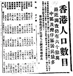 On 18 September 1942, the Japanese Occupation Government in Hong Kong held the first population census. According to historical documents, more than 2,000 people were killed or disappeared after being arrested during the census.[44]