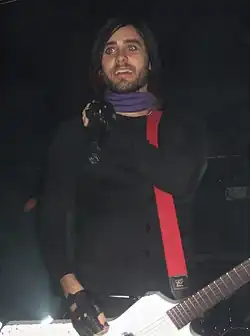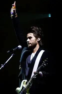 Leto is the lead vocalist, multi-instrumentalist and main songwriter for Thirty Seconds to Mars, a band he formed in 1998 with his older brother Shannon Leto. Its debut album, 30 Seconds to Mars (2002), was released to positive reviews but to limited commercial success.[3] Its second album, A Beautiful Lie (2005), pushed the band into the public eye, and the next releases, This Is War (2009) and Love, Lust, Faith and Dreams (2013), received further critical and commercial success.[4] They were followed by America (2018) and It's the End of the World but It's a Beautiful Day (2023), both of which polarized critics upon release. The band has sold over 15 million albums worldwide.[5]