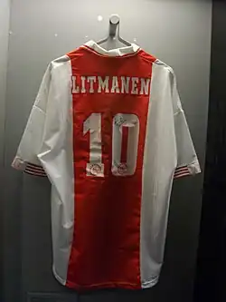 During 1992–93, his first season at Ajax, he played mostly in the reserves. Then Ajax manager Louis van Gaal was apparently not overly impressed with him, but the team physiotherapist suggested using him as a stand-in for Dennis Bergkamp, who was injured at the time. Van Gaal liked what he saw, and knowing that Bergkamp was about to leave for Inter, he announced that Litmanen would be Bergkamp's successor, something that people in Litmanen's native Finland found difficult to believe.[11] This turned out to be true, however, and he inherited from Bergkamp the famous number 10 shirt, which is often given to playmakers. He went on to score 26 goals in the 1993–94 season, becoming the league's top scorer, and leading Ajax to the title. He was also voted Footballer of the Year in the Netherlands in 1993.
