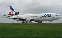 In 1963, the first Sud Aviation Caravelle joined the JAT fleet. In 1969, the first McDonnell Douglas DC-9-32 (of 16) arrived, followed by Boeing 707 in 1970, McDonnell Douglas DC-10 in 1971 (of 7), and in 1974 by the first two (of nine) Boeing 727-200s.[8][9]