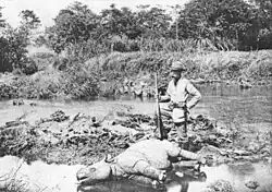 A Dutch hunter with a dead R. s. sondaicus in Ujung Kulon, 1895