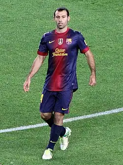 Javier Alejandro Mascherano (Spanish: [xaˈβjeɾ aleˈxandɾo mastʃeˈɾano];[5] born 8 June 1984) is an Argentine football manager and former player who is the current head coach of Major League Soccer club Inter Miami. As a player, he played as a centre-back or defensive midfielder, most notably for Liverpool, Barcelona and the Argentina national team, being heralded as one of the best defenders and midfielders of his generation.