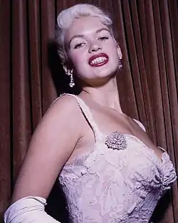 Jayne Mansfield (born Vera Jayne Palmer; April 19, 1933 – June 29, 1967) was an American actress, Playboy Playmate, singer, and sex symbol of the 1950s and early 1960s. She was known for her numerous publicity stunts, her buxom figure, and her personal life. Her film career was short-lived, but she won a Theatre World Award and a Golden Globe Award. Mansfield gained a reputation as Hollywood's "smartest dumb blonde".