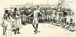 In the post-Civil War period (after 1865), African Americans were able to obtain surplus military bass drums, snare drums and fifes, and an original African-American drum and fife music emerged, featuring tresillo and related syncopated rhythmic figures.[62] This was a drumming tradition that was distinct from its Caribbean counterparts, expressing a uniquely African-American sensibility. "The snare and bass drummers played syncopated cross-rhythms," observed the writer Robert Palmer, speculating that "this tradition must have dated back to the latter half of the nineteenth century, and it could have not have developed in the first place if there hadn't been a reservoir of polyrhythmic sophistication in the culture it nurtured."[56]