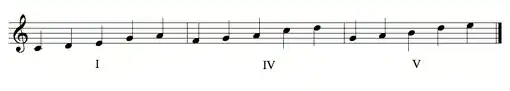 - An ancient west central Sudanic stratum of pentatonic song composition, often associated with simple work rhythms in a regular meter, but with notable off-beat accents.[88]