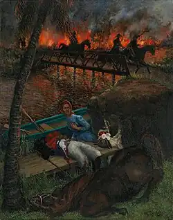 During the 11 March 1802 battle, Dessalines and his 1,300 men defended a small fort against 18,000 attackers. To inspire his troops at the start of the battle, he waved a lit torch near an open powder keg and declared that he would blow the fort up should the French break through.[20] The defenders inflicted extensive casualties on the attacking army, but after a 20-day siege, they were forced to abandon the fort due to a shortage of food and munitions. The rebels forced their way through the enemy lines and into the Cahos Mountains, with their army still largely intact.[20]