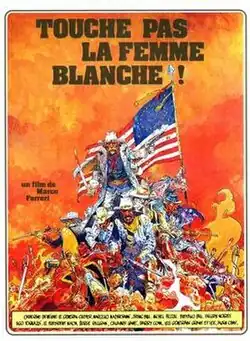 Outside his actual involvement with motion pictures, Giraud was in this period of time also occasionally commissioned to create poster art for, predominantly European, movies. Movies for which Giraud, also as "Mœbius", created poster art included, Touche pas à la femme blanche ! (1974 as Gir, three 120x160 cm versions), S*P*Y*S (1974, unsigned, American movie but poster art for release in France), Vous ne l'emporterez pas au paradis (1975, unsigned), Les Chiens (1979 as Mœbius, rejected, used as cover for Taboo 4), Tusk (1980 as Giraud, a Jodorowsky film), and La Trace (1983 as Mœbius).
