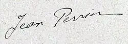 Perrin was an atheist and a socialist.[15][16] He was an officer in the Engineer Corps during World War I. In 1915, he was appointed Deputy Chief of the Directorate of Inventions for National Defense, which aimed to coordinate French laboratories in the war effort.