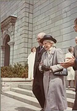After departing Rideau Hall for the last time as governor general in 1990, Sauvé and her husband returned to Montreal, where she continued to work with the Sauvé Foundation. Only two years later, however, Maurice died, and Sauvé followed him on January 26, 1993, after a long battle with Hodgkin's lymphoma.[14] The couple were both interred in Notre Dame des Neiges Cemetery in Montreal, and, one year following her death, Canada Post issued a postage stamp bearing an image of Sauvé.