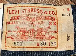 The classic label for Levi 501 jeans