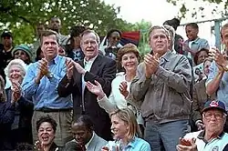 Bush ran again for governor in 1998, defeating Democrat Buddy MacKay, who was lieutenant governor. Bush ran for reelection in 2002 to become Florida's first two-term Republican governor.[36] During his eight years as governor, Bush was credited with initiating environmental improvements, such as conservation in the Everglades,[37] supporting caps for medical malpractice litigation, moving medicaid recipients to private systems, and instituting reforms to the state education system, including the issuance of vouchers and promoting school choice.[38][39] Bush was governor when his brother George won an intensely fought election recount in Florida to become president. Bush recused himself from any official role in the recount.[40]