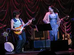 Beck's next release was in 1999, his first foray into guitar-based electronica, Who Else!. The album was Beck's first collaboration with a female instrumentalist, Jennifer Batten,[67] in touring, writing, and recording as well as the first time he had worked with another guitarist on his own material since playing in the Yardbirds. Beck continued to work with Batten through the post-release tour of You Had It Coming in 2001.[68]