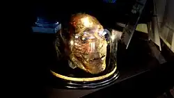 On his death in 1832, Bentham left instructions for his body to be first dissected and then to be permanently preserved as an "auto-icon" (or self-image), which would be his memorial. This was done, and the auto-icon is now on public display in the entrance of the Student Centre at University College London (UCL). Although he has been described as the "spiritual founder" of UCL due to his advocacy for the general availability of education, his direct involvement in the university's founding was limited.[18]