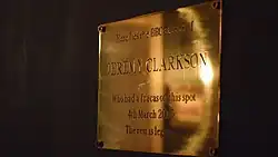 In 2005, Clarkson received an honorary Doctor of Engineering degree from Oxford Brookes University.[101] His views on the environment precipitated a small demonstration at the award ceremony for his honorary degree, when Clarkson was pied by road protester Rebecca Lush.[92] Clarkson took this incident in good humour, responding "good shot" and subsequently referring to Lush as "Banana girl".[102]