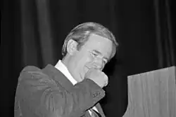 During the 1980s, the Moral Majority became one of the largest political lobbies for evangelical Christians in the U.S.[24] According to Falwell's autobiography, the Moral Majority was promoted as "pro-life, pro-traditional family, pro-moral, and pro-American"[25] and was credited with delivering two-thirds of the white evangelical vote to Ronald Reagan in the 1980 presidential election.[26] According to Jimmy Carter, "that autumn [1980] a group headed by Jerry Falwell purchased $10 million in commercials on southern radio and TV to brand me as a traitor to the South and no longer a Christian."[27] As head of the Moral Majority, Falwell consistently supported Republican candidates and conservative politics. This led Billy Graham to criticize him for "sermonizing" about political issues that lacked a moral element. At the time of Falwell's death, Graham said: "We did not always agree on everything, but I knew him to be a man of God. His accomplishments went beyond most clergy of his generation."[24]