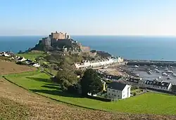 In the ninth century the island was raided by Vikings and in 933 it was annexed to Normandy by William Longsword.[38]: 22 When Duke William the Conqueror became King of England in 1066, the island remained part of the Norman possessions. However, in 1204, when Normandy was returned to the French king, the island remained a possession of the English crown, though never incorporated into England.[39] Traditionally it is said that Jersey's self-governance originates from the Constitutions of King John, however this is disputed.[38]: 25 Nevertheless, the island continued to follow Norman customs and laws. The King also appointed a Bailiff and a Warden (now Lieutenant-Governor). The period of English rule was marked by wars between England and France, as such a military fortress was built at Mont Orgueil.[40]