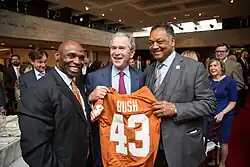 In March 1999, Jackson announced he would not be a candidate in the 2000 presidential election, stating his intent to continue championing the causes of education and health care reform and highlighting the "ongoing shame of our nation—the explosive growth of the prison-industrial complex."[224][225] In August, Jackson criticized Republican Governor of Texas and presidential candidate George W. Bush as showing no leadership after the murder of James Byrd Jr. by not pushing any hate-crime bills.[226] On March 1, 2000, Jackson endorsed Vice President Al Gore, saying that he brought "to the table a body of invaluable accomplishments as a former congressman, senator and vice president."[227] Gore won the nomination,[228] and Jackson addressed the 2000 Democratic National Convention.[229][230]