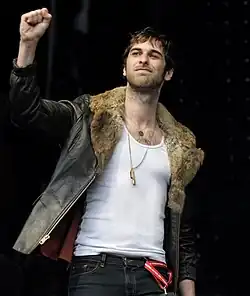 "Seventeen" was issued as the third single in April 2010, which reached No. 31 and was certified gold by ARIA.[58] During that month the group appeared on TV variety show Hey Hey It's Saturday's first episode since the reunion series, for performances of "She's a Genius" and "Seventeen".[59] From September to November 2010 the rock quartet toured Australia as the support act for Powderfinger's Sunsets Farewell Tour.[60][61] While Nic and Muncey were on a hiatus from performing, in early 2011 Wilson on bass guitar and Chris on lead vocals formed a doom-disco band, the DamnDogs, in Los Angeles with Louis Macklin on keyboards and electronics and Mitch McIvor (Cesters' cousin) on guitar.[6][62][63] They released a debut EP Strange Behaviour on 9 August 2011 via iTunes. On 26 March 2012 Jet announced their "discontinuation as a group," via their official website and Facebook:[6]