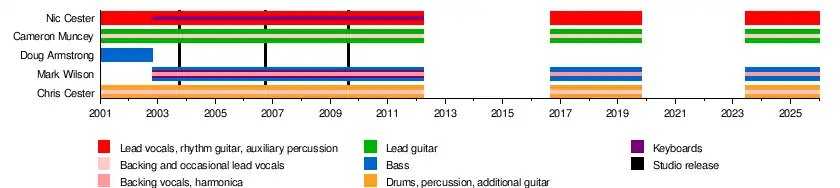 - Nic Cester – lead vocals, rhythm guitar, auxiliary percussion, keyboards (2001–2012, 2016–2019, 2023–present)