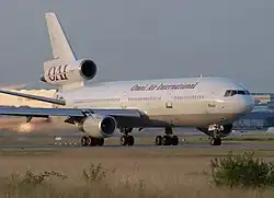 McDonnell Douglas DC-10 of Omni Air International in July 2003. This is an example of a trijet configuration