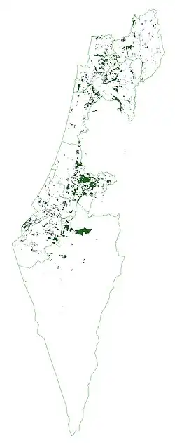 Map of planted forests in Israel by the Jewish National Fund