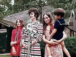 On September 14, Slayton informed Lovell that he had been accepted.[29] To avoid tipping off the media, Lovell checked into the Rice Hotel in Houston under the name of Max Peck, its general manager.[30] On September 17, the media crowded into the 1800-seat Cullen Auditorium at the University of Houston for the official announcement, but it wasn't as big as the unveiling of the Mercury Seven three years before.[31] The group became known as the "Next Nine" or the "New Nine".[32][33][34][35] The new astronauts moved to the Houston area in October 1962.[36] Conrad and Lovell built houses in Timber Cove, south of the Manned Spacecraft Center (MSC).[37] Developers in Timber Cove offered astronauts mortgages with small down payments and low interest rates.[38] The MSC complex was not yet complete, so NASA temporarily leased office space in Houston.[39]