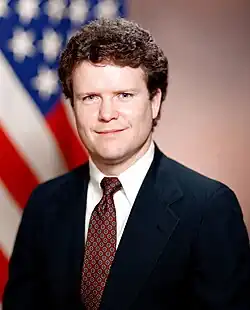 During the Reagan Administration, Webb served as the nation's first Assistant Secretary of Defense for Reserve Affairs from 1984 to 1987. In 1987, he served as Secretary of the Navy, becoming the first Naval Academy graduate to serve as the civilian head of the Navy. As Navy Secretary, Webb pushed the appointment of Alfred M. Gray, Jr. as Commandant of the Marine Corps, hoping that Gray could reshape the Corps into the elite unit it once was.[21] Webb resigned in 1988 after refusing to agree to reduce the size of the Navy. Webb had wished to increase the Navy to 600 ships. As revealed in The Reagan Diaries, President Ronald Reagan wrote on February 22, 1988: "I don't think Navy was sorry to see him go."[22]