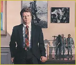 Webb supported Nebraska Senator Bob Kerrey's campaign for the 1992 Democratic presidential nomination.[12] In 1994, he endorsed incumbent Democrat Charles Robb for reelection to his Senate seat, over Webb's former Naval Academy classmate Oliver North; like Webb, both Robb and North were decorated Marine veterans of the Vietnam war.[26] Webb subsequently endorsed Republican George Allen over Robb in 2000,[27] and then ran against Allen himself in 2006.