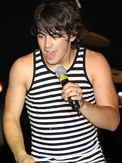 Joseph Adam Jonas (born August 15, 1989)[1] is an American singer, songwriter, and actor. He rose to fame as a member of the pop rock band the Jonas Brothers, alongside his brothers Kevin and Nick. The group released their debut studio album It's About Time through Columbia Records in 2006. After signing with Hollywood Records, the group released their self-titled second studio album in 2007, which became their breakthrough record. The band became prominent figures on the Disney Channel during this time, gaining a large following through the network: they appeared in the widely successful musical television film Camp Rock (2008) and its sequel Camp Rock 2: The Final Jam (2010) as well as two of their own series, Jonas Brothers: Living the Dream (2008–2010) and Jonas (2009–2010).