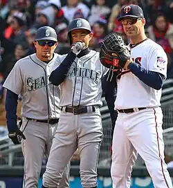 - ^ @Cut4 (September 30, 2018). "Now catching for the first time in 5 years & for possibly the last time in his career, #7, Joe Mauer" (Tweet). Retrieved September 30, 2018 – via Twitter.