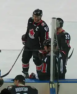 ![]() Sakic (no. 91) at the 2006 Olympics | ||