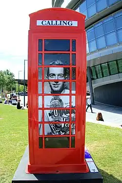 In 2012, marking 25 years of Childline (the free counselling service for children and young people in the UK), BT commissioned artists to design and decorate full-sized K6 red telephone box replicas, with Strummer featuring in an artwork titled "London Calling".[49]