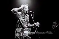 ![]() Strummer performing live with the Clash at the Tower Theater in Upper Darby Township, Pennsylvania in 1980 | |