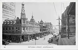 Precise records for the choice of name were lost. Johannes Rissik and Johannes Joubert were members of a delegation sent to England to obtain mining rights for the area. Joubert had a park in the city named after him, and Rissik has his name for one of the main streets in the city where the historically important, albeit dilapidated, Rissik Street Post Office is located.[25][26] The City Hall is also located on Rissik Street.