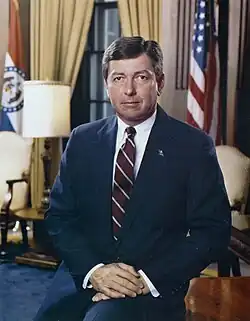 - ^ a b Yarwood, Dean L.; Hardy, Richard J. (1989). "The Norm of Standing Aside: Gubernatorial Transition in Missouri in 1984". In Beyle, Thad L. (ed.). Gubernatorial Transitions: The 1983 and 1984 Elections. Duke University Press. p. 73. ISBN 0-8223-0858-4.
