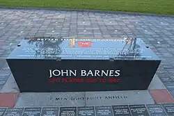 Barnes' plinth outside Anfield marking his ten years with Liverpool, including his performance in the 5–0 win over Nottingham Forest in April 1988.