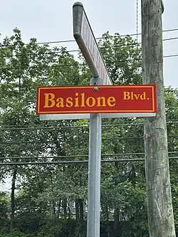 Basilone Boulevard sign in Raritan, New Jersey.A memorial parade for Basilone along Somerset Street in his hometown of Raritan, New Jersey, has been held annually since 1981.[1][44] In 2022, five blocks of West Somerset Street were renamed "Basilone Boulevard."[45]