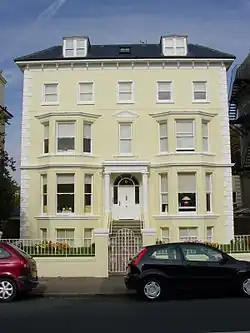 Adams arrived in Eastbourne in 1922, where he lived with his mother and his cousin, Sarah Florence Henry. In 1929, he borrowed £2,000 (equivalent to £100,753 at 2022 prices) from a patient, William Mawhood,[13] and bought an eighteen-room house called Kent Lodge,[14] in Trinity Trees (then known as Seaside Road),[15] a select address. Adams would frequently invite himself to the Mawhoods' residence at mealtime, even bringing his mother and cousin.[13] He also began charging items to their accounts at local stores without their permission. Mrs Mawhood would later describe Adams to the police as "a real scrounger".[16] When Mr Mawhood died in 1949, Adams visited his widow, uninvited, and took a 22-carat-gold pen from her bedroom dressing table, saying he wanted "something of her husband's". He never visited her again.[16]