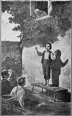 Depiction of Bosco as a little preacher repeating the Sunday Sermon