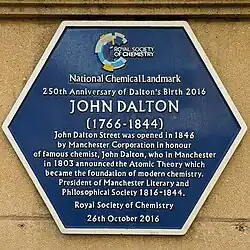 - ^ "John Dalton blue plaque". openplaques.org. Archived from the original on 26 August 2017. Retrieved 26 August 2017.