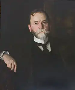 The same panic that nearly ruined McKinley convinced Hay that men like himself must take office to save the country from disaster. By the end of 1894, he was deeply involved in efforts to lay the groundwork for the governor's 1896 presidential bid. It was Hay's job to persuade potential supporters that McKinley was worth backing.[94] Nevertheless, Hay found time for a lengthy stay in New Hampshire—one visitor at The Fells in mid-1895 was Rudyard Kipling—and later in the year wrote, "The summer wanes and I have done nothing for McKinley."[95] He atoned with a $500 check to Hanna, the first of many.[95] During the winter of 1895–96, Hay passed along what he heard from other Republicans influential in Washington, such as Massachusetts Senator Henry Cabot Lodge.[96]
