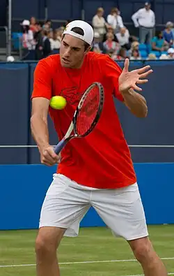 John Robert Isner (born April 26, 1985) is an American former professional tennis player. He was ranked as high as world No. 8 in singles and No. 14 in doubles by the Association of Tennis Professionals (ATP).[2] Considered one of the best servers ever to play on the ATP Tour, Isner achieved his career-high singles ranking in July 2018 by virtue of his first Masters 1000 crown at the 2018 Miami Open and a semifinal appearance at the 2018 Wimbledon Championships. At the 2010 Wimbledon Championships, Isner played the longest professional tennis match in history, requiring five sets and 183 games to defeat Nicolas Mahut in a match which lasted 11 hours and 5 minutes, and was played over the course of three days.[3] Isner holds the record for hitting the ATP's fastest official serve ever and third-fastest on record in tennis at 157.2 mph or 253 km/h during his first-round 2016 Davis Cup match. He has the most aces in the history of the ATP Tour, having served 14,470, as of August 31, 2023.[4][5][6][7] Isner retired from professional tennis following the 2023 US Open.[8]