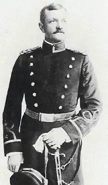 Pershing was sworn in as a West Point cadet in July 1882.[23] He was selected early for leadership positions and became successively First Corporal, First Sergeant, First Lieutenant, and First Captain, the highest possible cadet rank.[24] Pershing also commanded, ex officio, the honor guard that saluted the funeral train of President Ulysses S. Grant as it passed West Point in August 1885.[25]