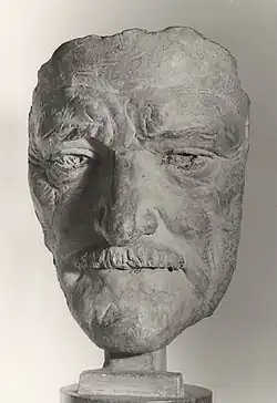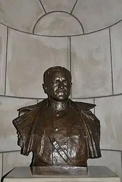 In September 1917, the French government commissioned a portrait of Pershing by 23-year-old Romanian artist Micheline Resco. Pershing removed the stars and flag from his car and sat up front with his chauffeur while traveling from his AEF headquarters to visit her by night in her apartment on the rue Descombes. Their friendship continued for the rest of his life.[88] In 1946, at 85, Pershing secretly wed Resco in his Walter Reed Hospital apartment. Resco was 35 years his junior.[89]