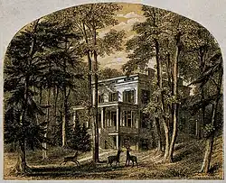 Audubon caught yellow fever upon arrival in New York City. The ship's captain placed him in a boarding house run by Quaker women who nursed Audubon to recovery and taught him English. He traveled with the family's Quaker lawyer to the Audubon family farm at Mill Grove.[35] The 284-acre (115 ha) homestead is located on the Perkiomen Creek a few miles from Valley Forge.
