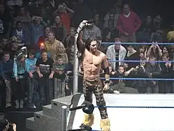 On April 15, Morrison was drafted to the SmackDown brand as part of the 2009 Supplemental Draft.[87] On the April 17 episode of SmackDown, he defeated R-Truth.[88] On the May 1 episode of SmackDown, Morrison engaged in a backstage fight with Chris Jericho after Jericho slapped him, turning face in the process for the first time in his career.[89] Later that same night, Morrison defeated Shelton Benjamin, beginning a feud between the two. On the May 7 episode of Superstars, Morrison lost a match to Jericho after a distraction by Benjamin.[90] Morrison continued to score victories over Benjamin in singles and tag team matches before defeating him on May 17 at Judgment Day.[91]
