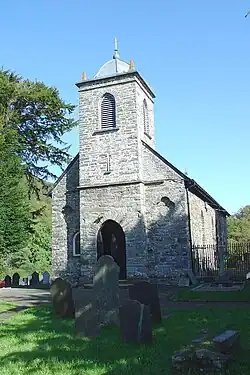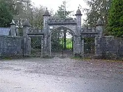 From 1796, Nash spent most of his time working in London; this was a prelude to his return to the capital in 1797.[28] At this time, Nash designed the delicate Gothic Revival gateway to Clytha Park near Abergavenny in Monmouthshire,[29] and also his alterations in Gothic Revival style in 1794 to Hafod Uchtryd for Thomas Johnes at Devil's Bridge, Cardiganshire.[30] Also in c. 1794–95 he advised on the paving, lighting and water supply in Abergavenny and designed an elegant market building.[31] Other work included Whitson Court, near Newport. After his return to London, Nash continued to design houses in Wales including Harpton Court in Radnorshire, which was demolished, apart from the service wing, in 1956.[32] In 1807 he drew up plans for the re-building of Hawarden Castle with Gothic battlements and towers, but the plan appears to have been modified by another architect when it was carried out.[33] In about 1808, he designed Monachty, near Aberaeron, and later drew up plans for work at Nanteos.[32]