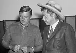In 1967, Wayne played the lead in Burt Kennedy's The War Wagon with Douglas as the second lead.[74] His second movie that year, Hawks' El Dorado, a highly successful partial remake of Rio Bravo with Robert Mitchum playing Martin's original role, premiered on June 7.[75]