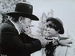In 1965, Wayne played the brief cameo role of a centurion in George Stevens's The Greatest Story Ever Told.[70] On April 6, he shared the screen with Kirk Douglas and Patricia Neal in Otto Preminger's In Harm's Way.[71] On June 13, he acted in Hathaway's The Sons of Katie Elder with Dean Martin.[72]
